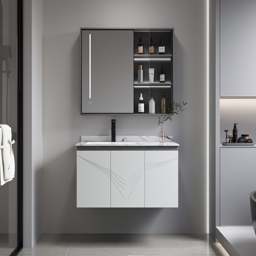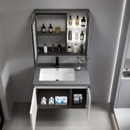 الخزانة الرئيسية: 1000 * 500 * 500 مم خزانة المرآة: 900 * 130 * 700 مم المواد: خشب رقائقي + سطح من الحجر الصناعي المشكل بالحرارة